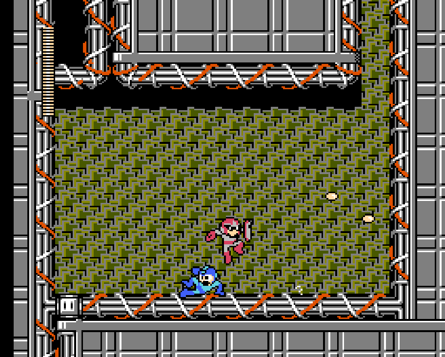 Finally, Mega Man 3 introduces perennial fan favorite Proto Man, who provides several crucial storyline beats and acts as a recurring miniboss specifically designed around Mega Man’s jump, move, shoot, and slide abilities. While the similar fights grow slightly monotonous, their design is evidence of the intricacy with which the slide is introduced (and as a wildcard rogue with an enigmatic whistle, Proto Man is still as cool as ever).