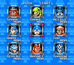 Along similar lines, the bosses in Mega Man 3 (chosen by over 50,000 fan entries submitted to Capcom) are also less memorable than those in 2 because their themes do not always correlate with their fighting styles. Shadow Man, for instance, uses a boomerang shuriken that has nothing to do with “shadowness.” This thematic inconsistency results in an illogical boss order–Just as I don’t understand Shadow Man’s weapon, I don’t understand why he is weak to Top Man’s Top Spin. Without an easy mode to explore boss weaknesses at a lower difficulty, Mega Man 3 asks for some trial and error that would feel like a bigger waste of time if the levels were not so worthy of being replayed.