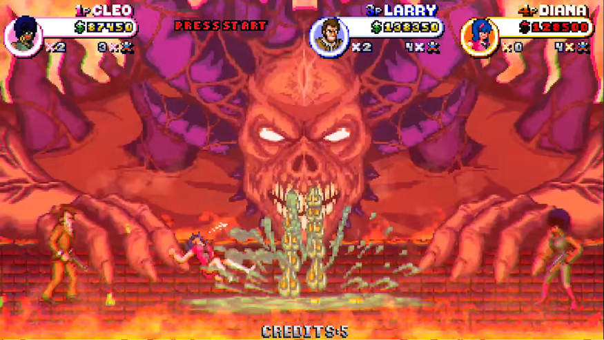 Best of all, the game features co-op with friends as well as four playable characters – Chuck, Diana, Larry, and Cleo. While Deathwish Enforcers may look more like Final Fight or Streets of Rage, it leans into the crazy, dark stuff like full-blown demons and zombie mayhem. Add in 7 levels to fight your way through and epic boss battles, and this is definitely a game to put on your radar – especially since you can get it digitally or physically, which is always a plus.