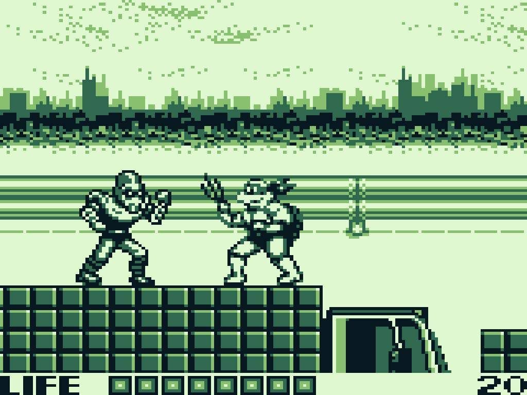 Fall of the Foot Clan was the TMNT’s first outing on Nintendo’s flagship handheld. An action/platform adventure, you take control of any of the teenage heroes through 5 stages. The controls are simplistic – standing upright with a press of the attack button takes a swipe with that Turtles’ respective weapon. Crouch and do the same launches a shuriken. Jump attacks are a simple-yet-effective kick.