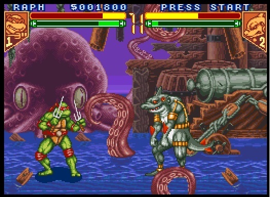 In Turtles in Time, the gang may have gone “where no Turtle have gone before”, but with Tournament Fighters they really did. Konami developed this incredible effort to rival the Street Fighter II and Mortal Kombat fighting genre dominance. With 10 fighters at your disposal, including the four turtles, Shredder, and a backup roster that surprisingly resembles the Archie comic series more than the TV show. Throwing an array of cartoon characters into a beat ‘em up is no simple feat, in fact back in the 90’s it rarely worked. Until Capcom’s Marvel franchise took off, Tournament Fighters was the best comic/cartoon fighting game in existence.