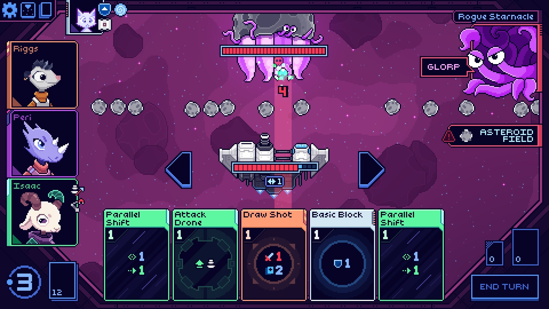 I really didn’t think that concept would necessarily work on paper, but in execution, it’s remarkably fluent and very well made. Your crew determines the types of cards you add to your deck, and you’ll have to always be playing with the position of your ship in mind. Avoid asteroids, deflect missiles and ravage the spacecraft that want nothing more than to slag you.