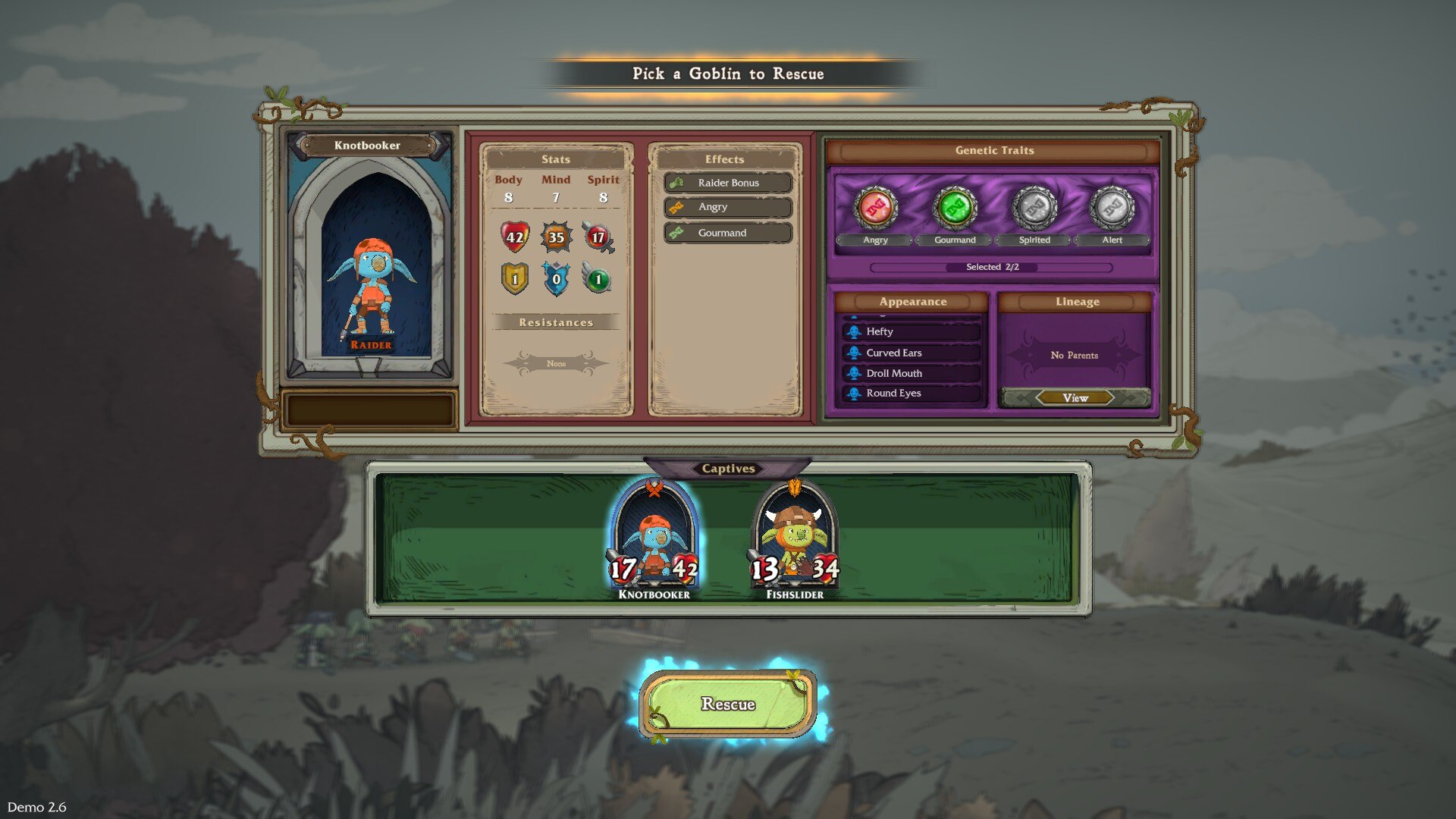 Though I enjoyed the combat, I did feel it was weighed heavily against your poor goblins. Maybe the aforementioned mechanics will help your chances, but in the demo I constantly felt like each battle would be my last. Even when I was able to purchase items and refresh my team with new goblins rescued from cages. There’s plenty of such captives, which probably goes to show durability is not goblinkind’s greatest strength.
